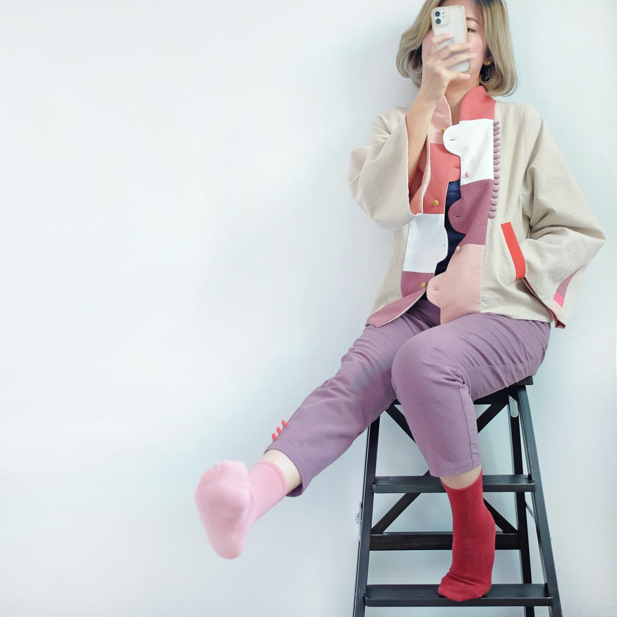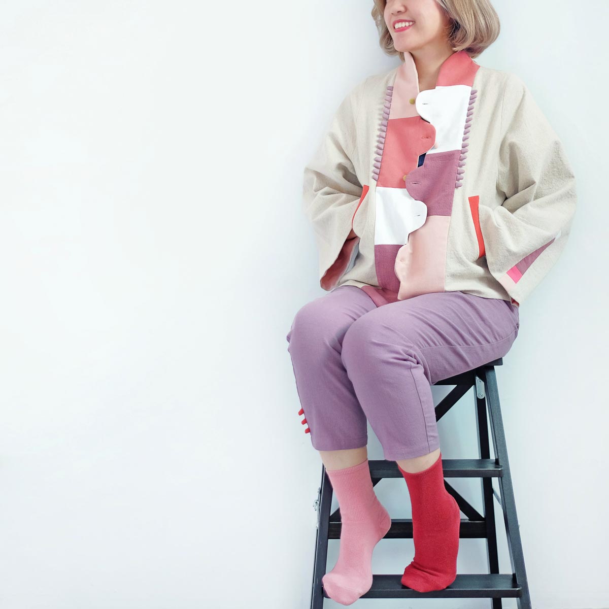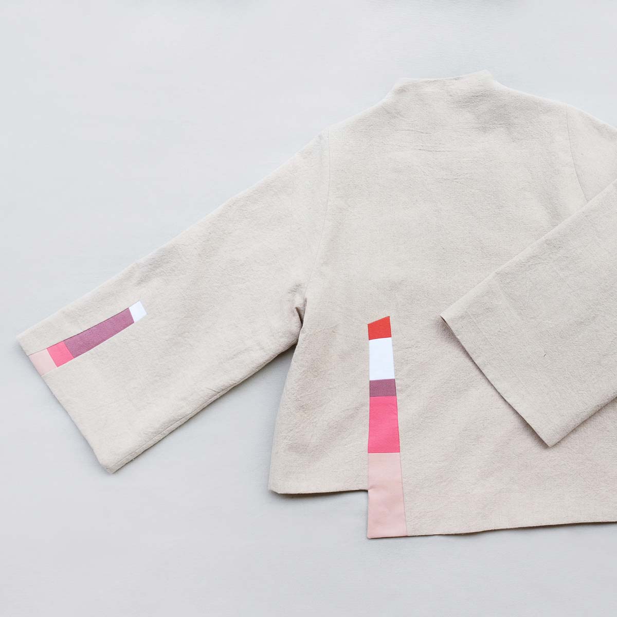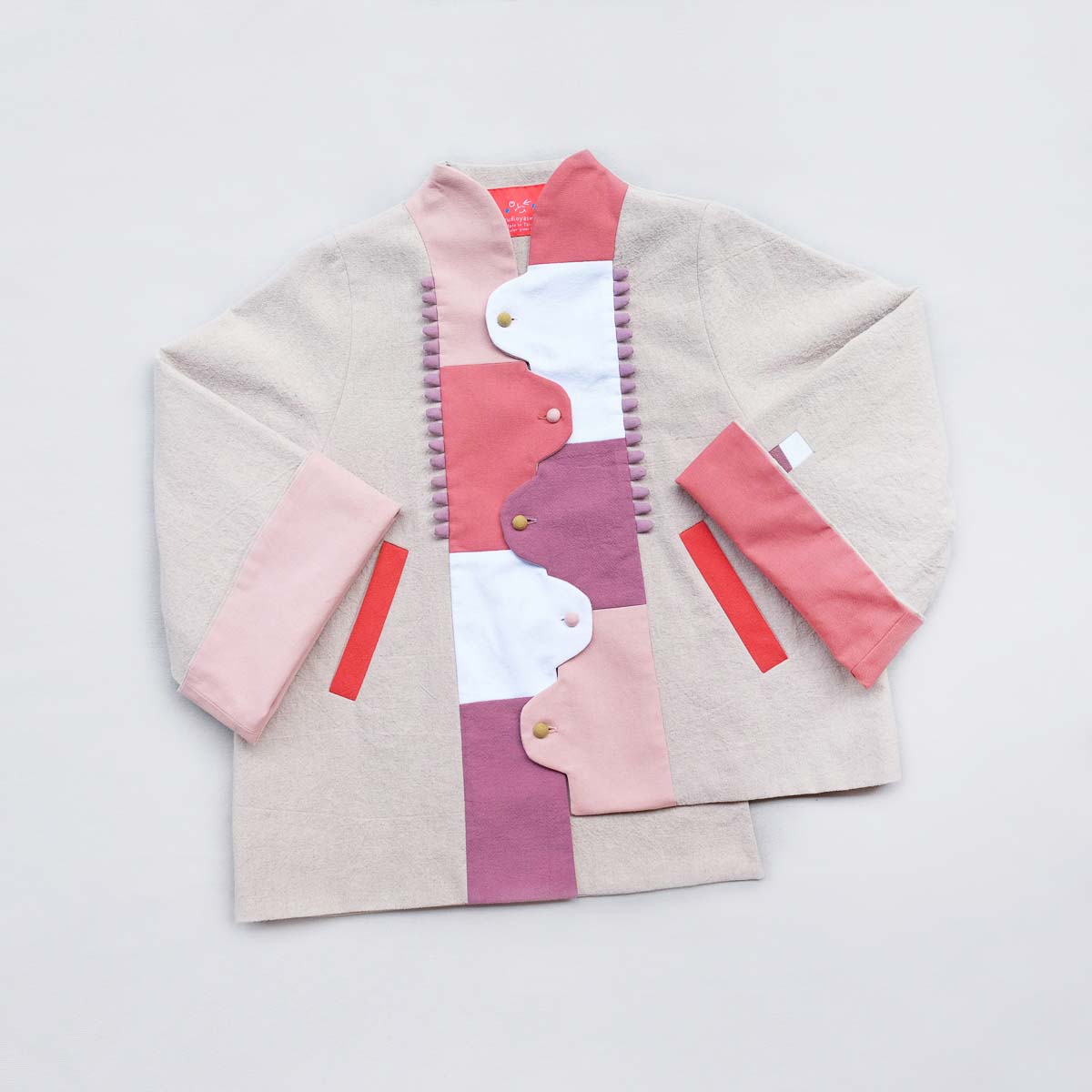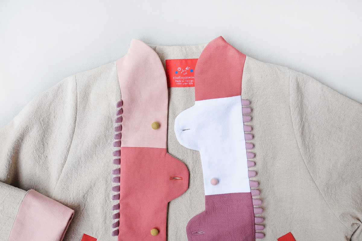 左扣右扣拼接秋冬外套 – 粉色 短版