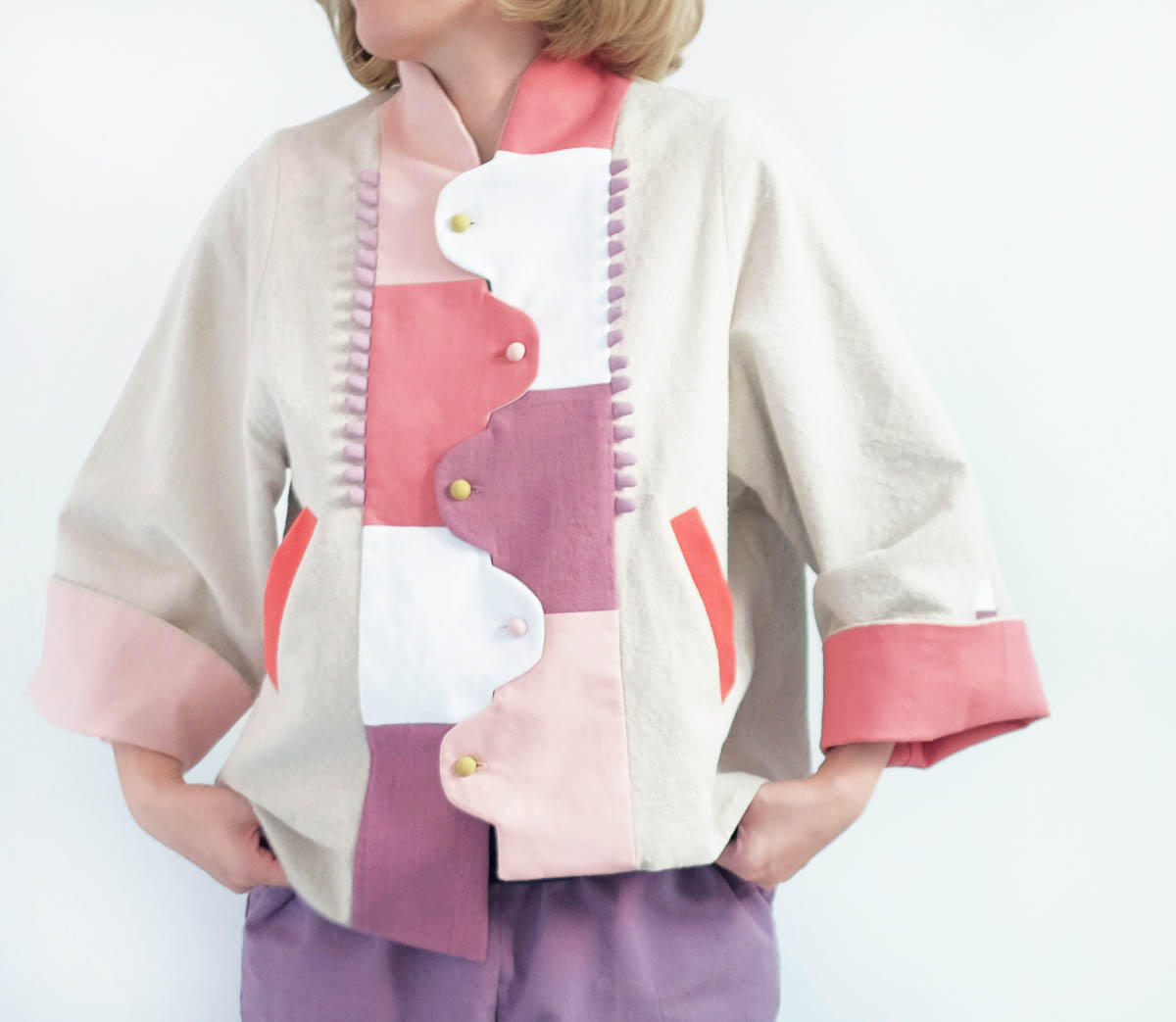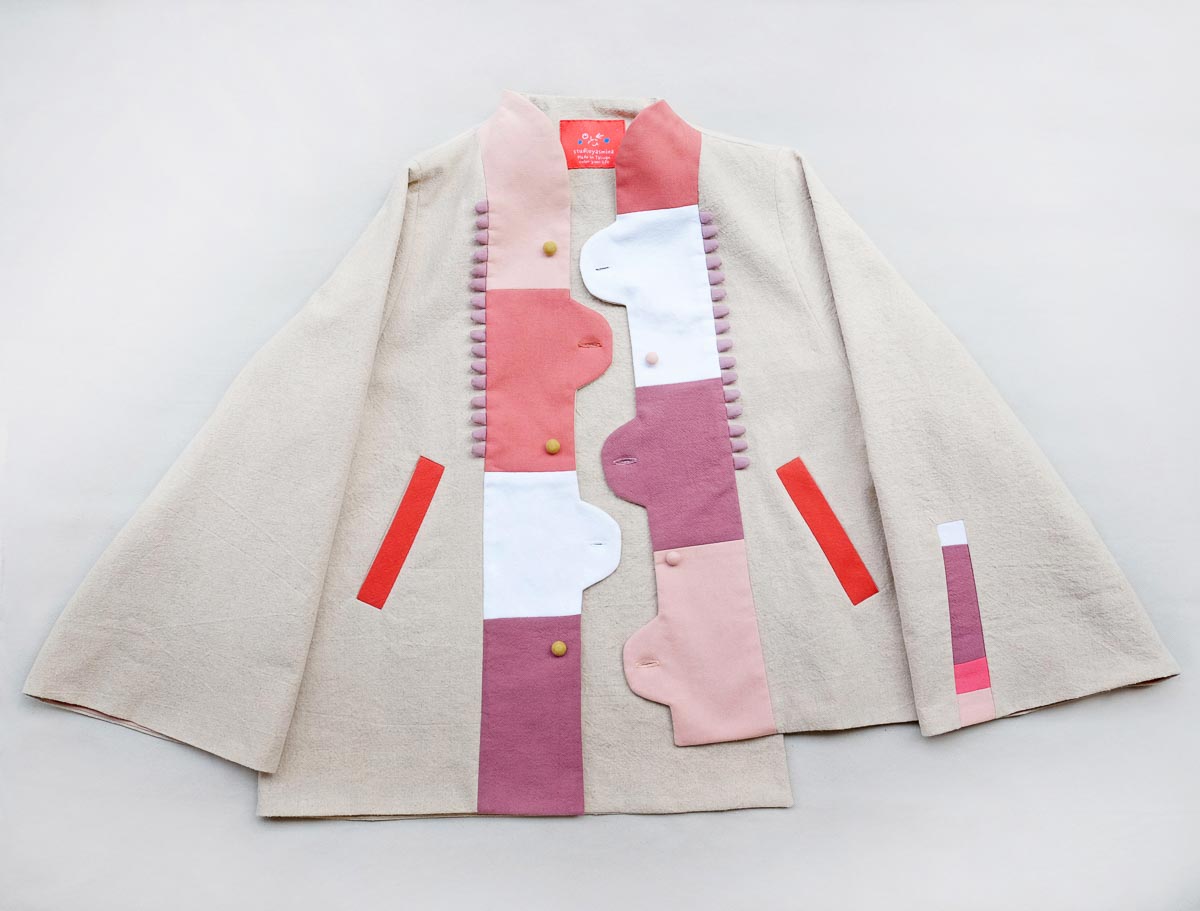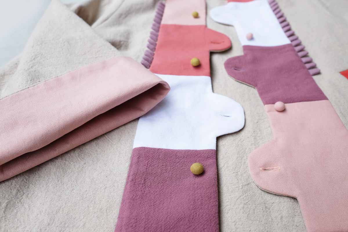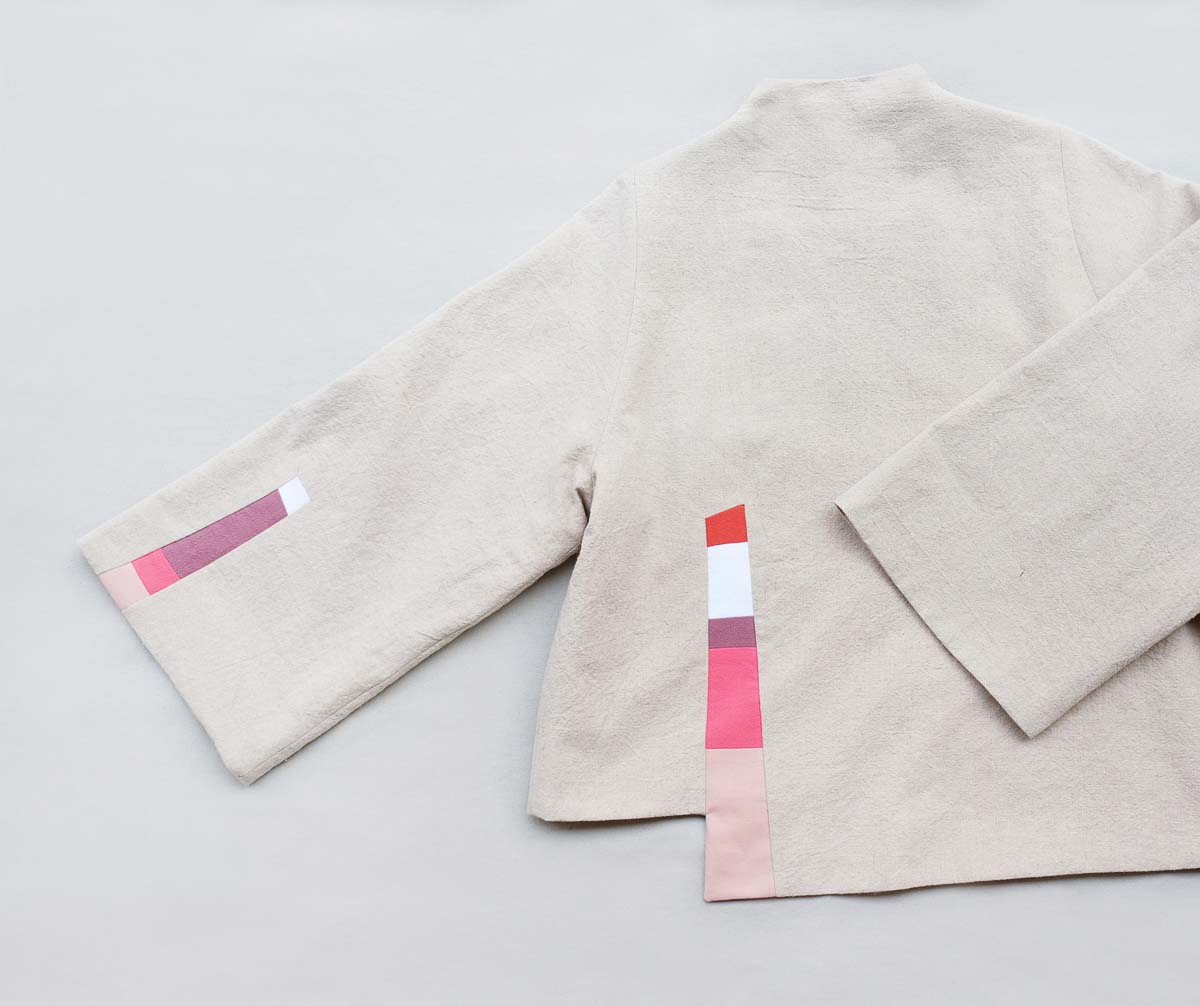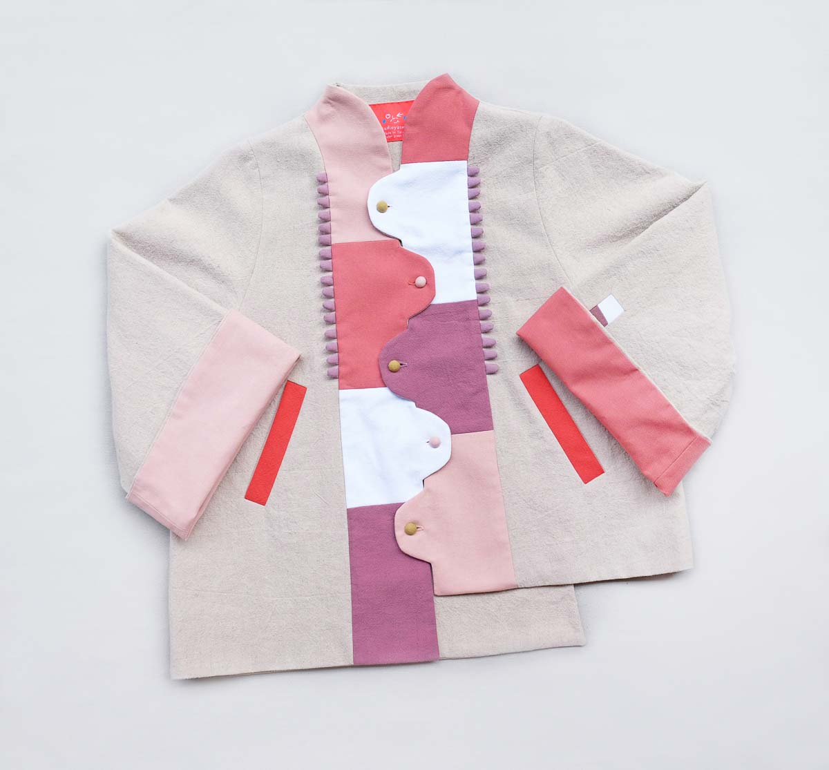 左扣右扣拼接秋冬外套 – 粉色 短版