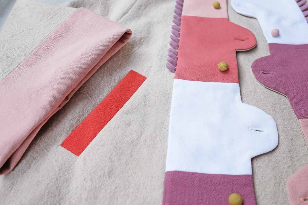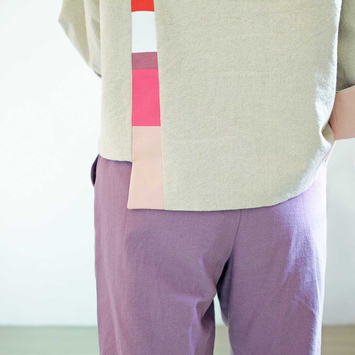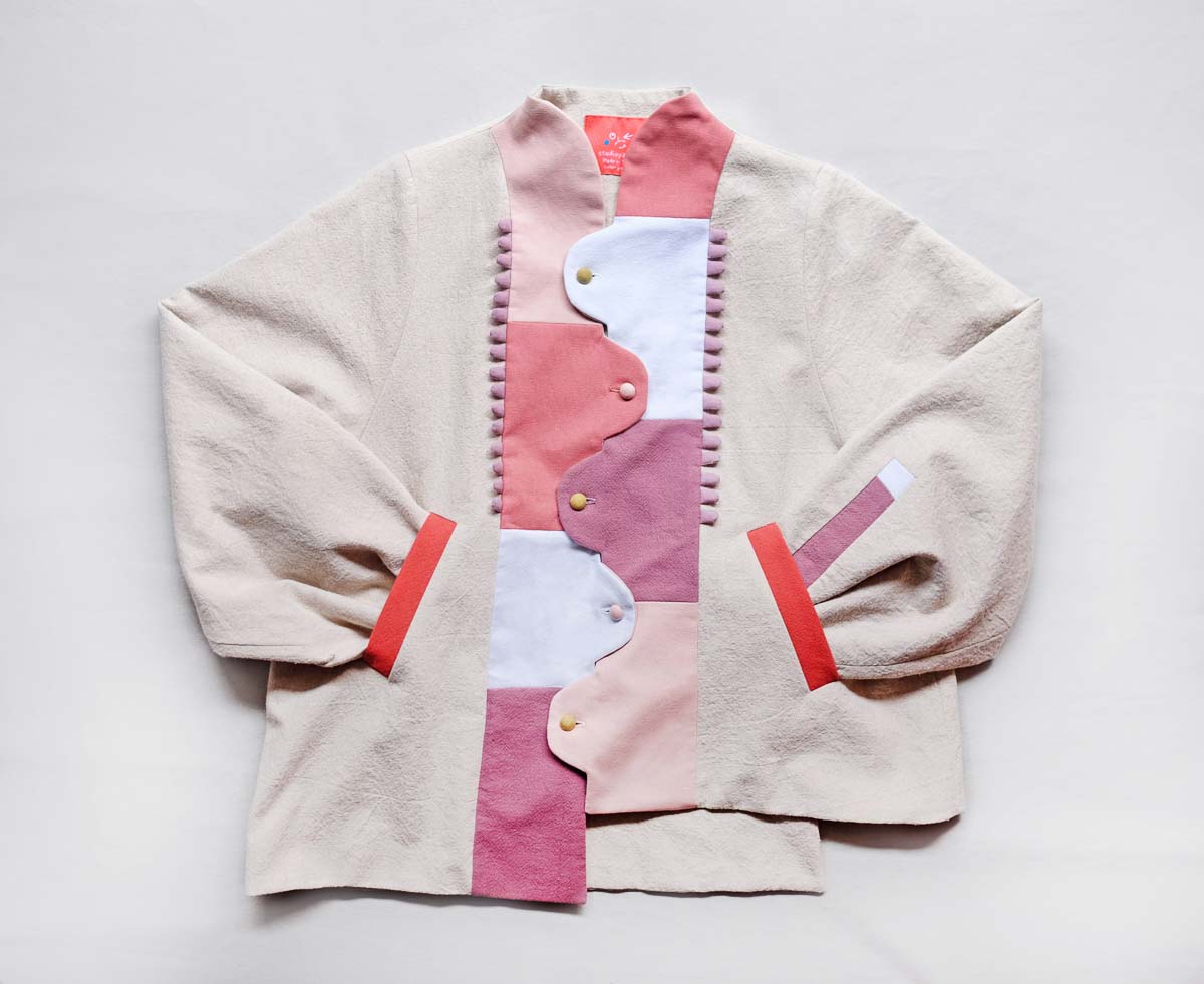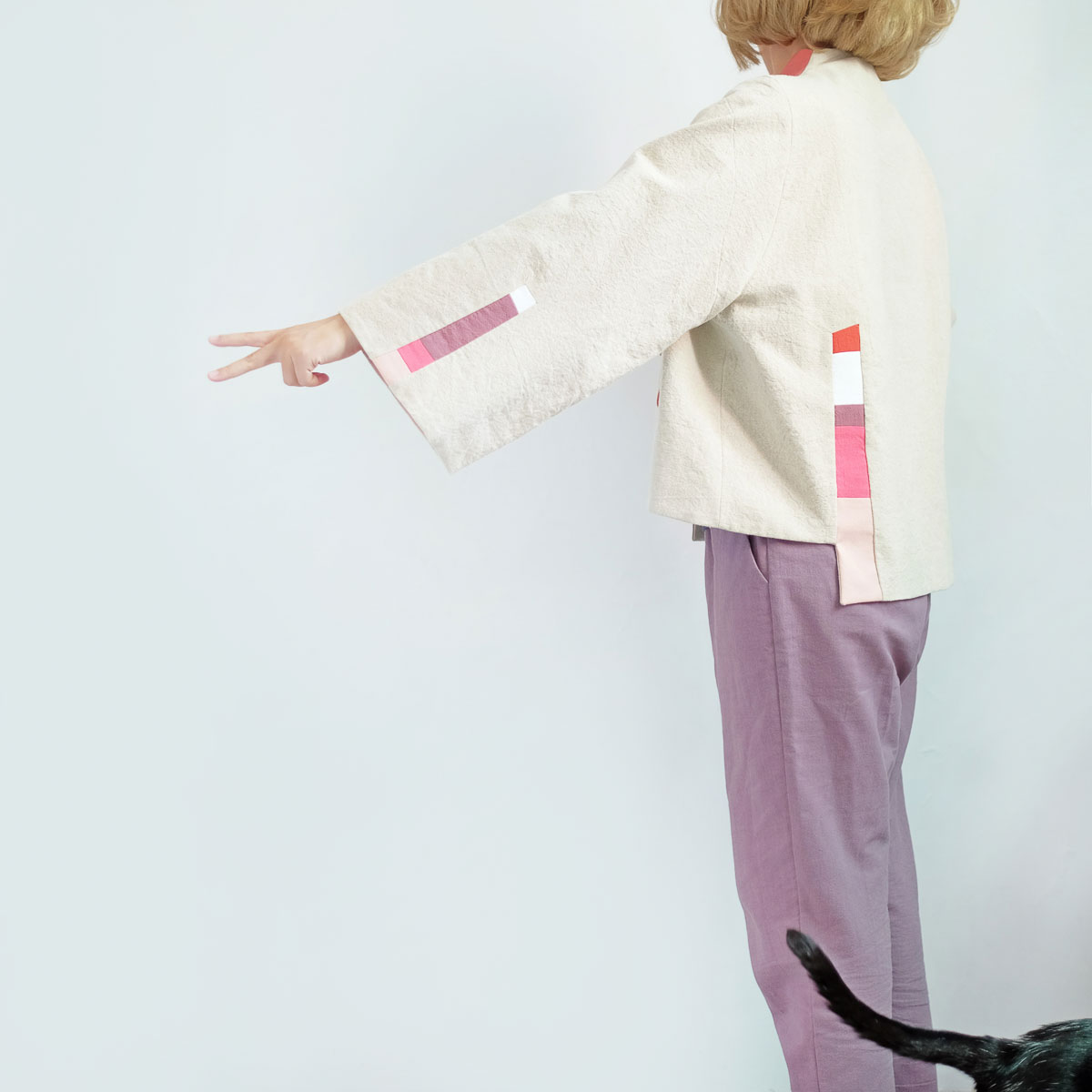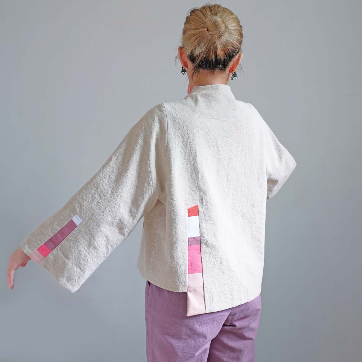 左扣右扣拼接秋冬外套 – 粉色 短版